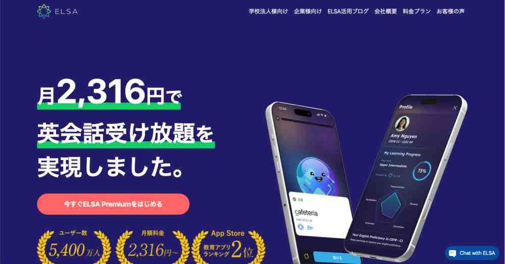 ELSA Speakは、世界130カ国以上で利用されている発音矯正アプリです。
