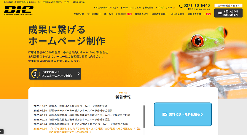 株式会社ディーアイシーは群馬県太田市を拠点に、中小企業向けのホームページ制作を中心に行っている制作会社です。