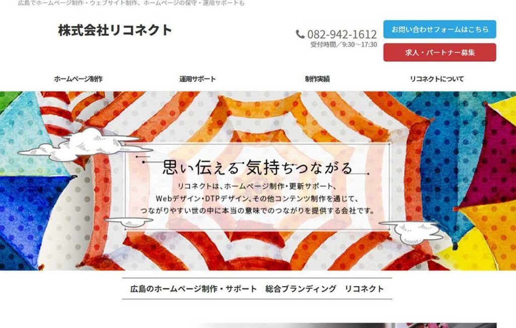 株式会社リコネクトは、広島を拠点に「街のホームページ屋さん」を掲げ、WordPressによる完全オリジナルデザイン制作と運用サポートを一貫提供する制作会社です。