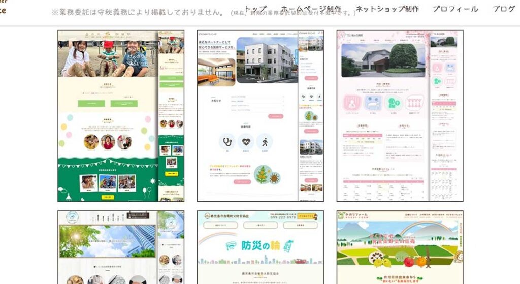 | 対応 | ・各種プランでのホームページ制作 ・スマホ対応、レスポンシブデザイン ・独自ドメイン取得とサーバー関連の手続き ・SSL、バックアップ、ウイルス対策、解析設定 ・WordPressまたは自社CMSで更新可能 ・各種オリジナルWebシステム開発 ・SEO対策とMEO対応 ・各種Web広告運用 ・LP制作と運用 ・ロゴ、パンフレット制作 ・写真撮影と取材ライティング |