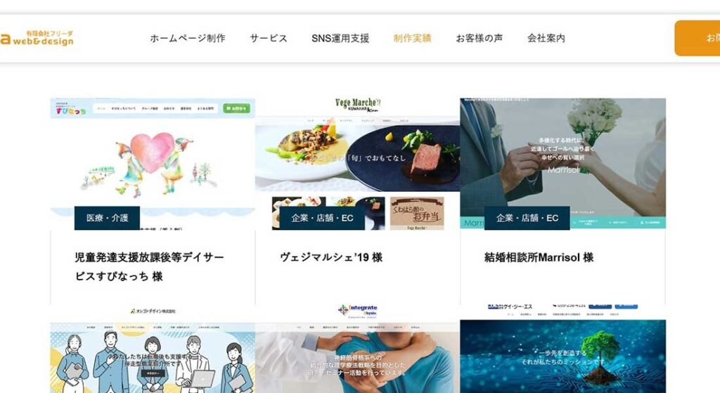 | 強み | ・対話から企画、運用まで一貫サポート ・3プランで幅広い制作ニーズに対応 ・SEO、SSL、スマホ対応など安全性と集客を重視 ・SNS運用、集客支援、動画制作、開発まで対応 ・医療、介護から行政まで多様な実績 |