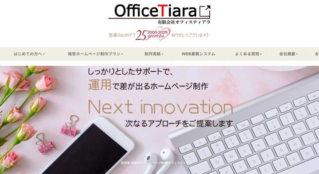 有限会社オフィスティアラは、高知市を拠点に中小企業・個人事業のサイト制作からWeb業務システムまで一貫対応する制作会社です。