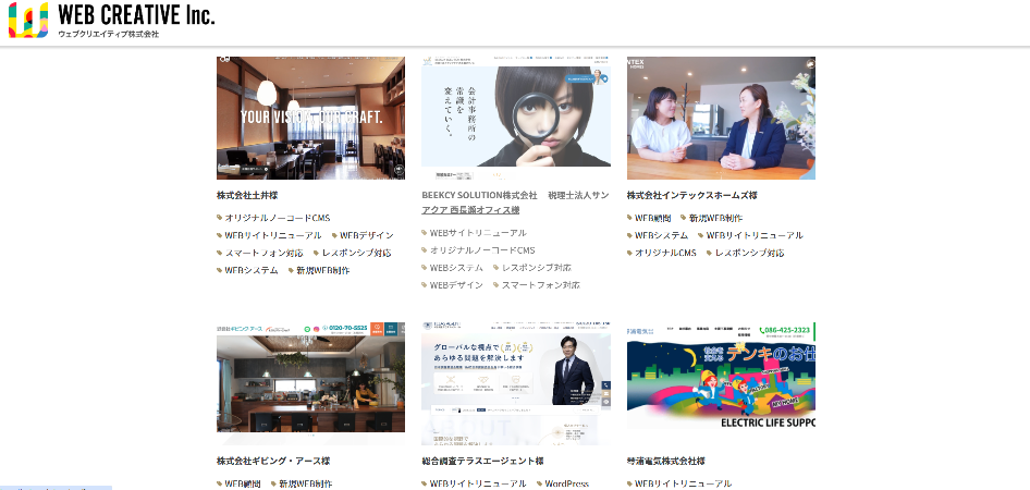 ウェブクリエイティブ株式会社は、岡山県内でもトップクラスの3000件以上の制作実績を持つホームページ制作会社。