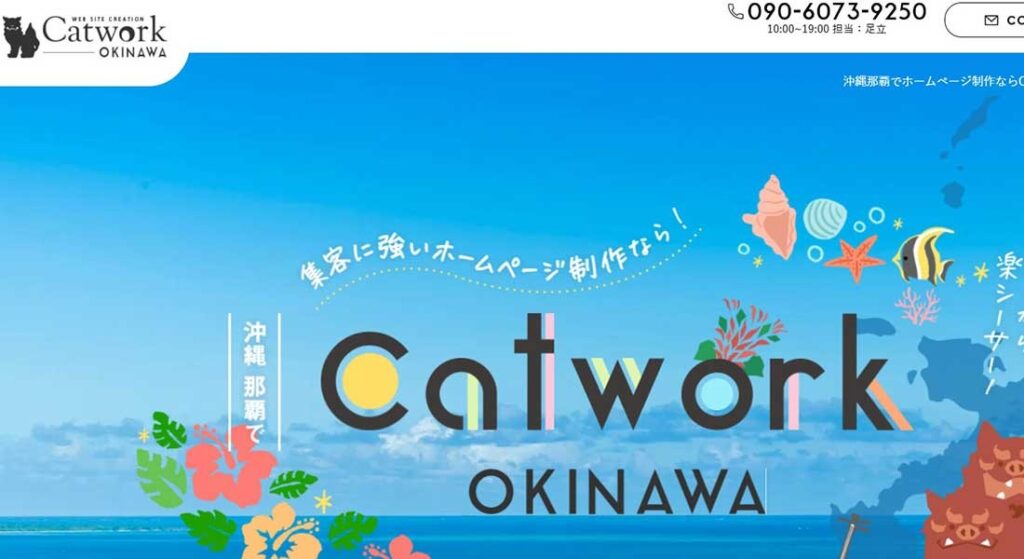 Catwork沖縄は、名古屋発のWeb制作会社が展開する沖縄・那覇拠点で、300社を超えるホームページ制作実績を持つ制作会社です。