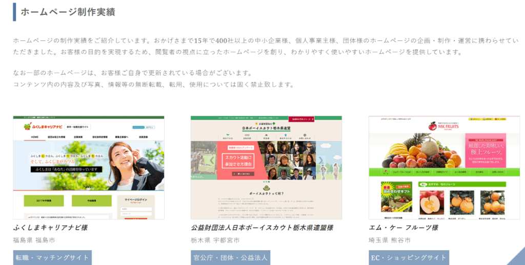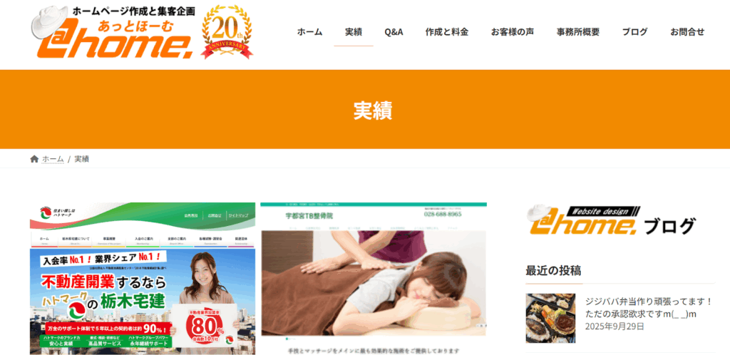 【ホームページのあっとほーむの制作実績】