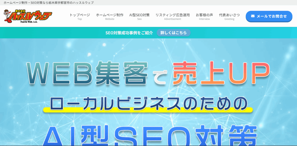 株式会社ハッスルウェブはホームページ制作やSEO対策支援で、ローカルビジネスの集客に強みを持つ宇都宮市の制作会社です。