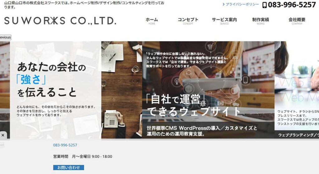 株式会社スワークスは、山口県山口市を拠点に、ホームページ制作・デザイン制作に加えて、SEO・コンテンツ運用・広告運用・SNS活用まで伴走するWebコンサルティング会社です。